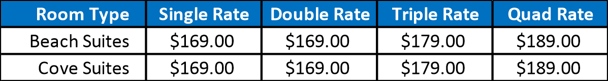 PLEASE NOTE: All rooms are subject to 14.5% tax rate per night and a Daily Resort Fee of $29.00 per night plus tax includes: Use of pool and towels, Use of private NEW launch ramp, Use of 2 bicycles (based upon availability-seasonal), 2 ½ hour waterpark passes per day (seasonal), 2 bags of ice, and Unlimited Wifi